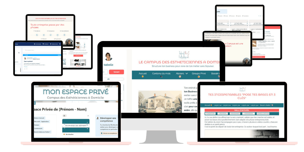 👉 L'espace membre des esthéticiennes à domicile ou installée chez elle (coin cabine, pièce dédiée, home studio…), pour développer leur activité avec une méthode simple et sur-mesure, sans sacrifier leur vie perso. 👍